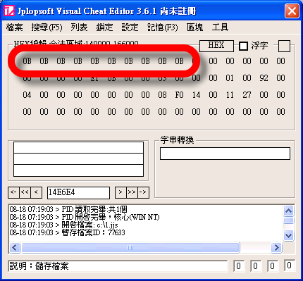上訴範例為將記憶體位址&H140000寫入 11 (BYTE)